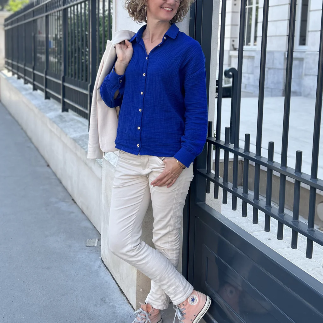 Sunrise est la chemise comme on les aime : avec ses emmanchures très basses et amples qui permettent de proposer également une version sans manches afin de la décliner quelque soit la saison !