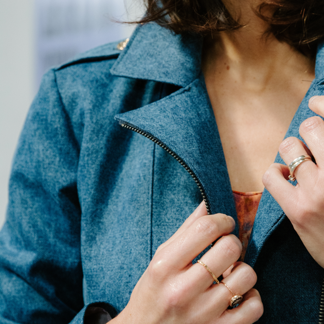 Choix du tissu : uniquement des tissus chaîne et trame, du jacquard, du tweed, du denim de poids moyen, du cuir ou du faux cuir, de la gabardine, de poids 230 à 400g/m2 selon le rendu souhaité. Pour la doublure je vous recommande de choisir un tissu spécifique pour les doublures, comme notre doublure 100% cupro glissante et plus respirante que du polyester.