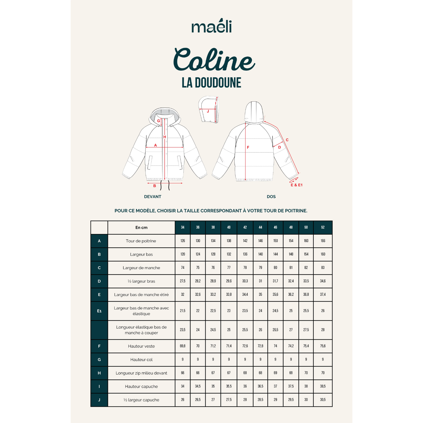 Patron doudoune "Coline" Maéli Paris de la taille 34 au 52