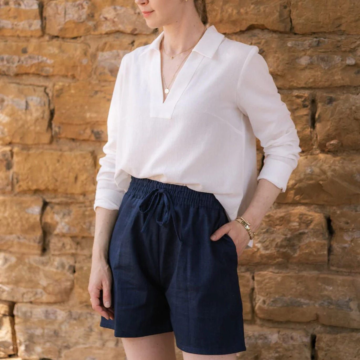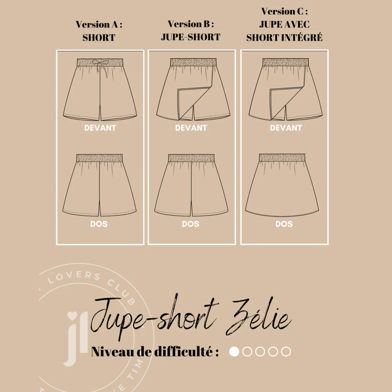 Zélie est un un patron ingénieux proposant 3 variantes : short, jupe-short ou jupe avec short intégré. Très rapide à coudre grâce à sa taille "effet smocké", compatible avec de nombreux imprimés et matières, Zélie a tout pour plaire.