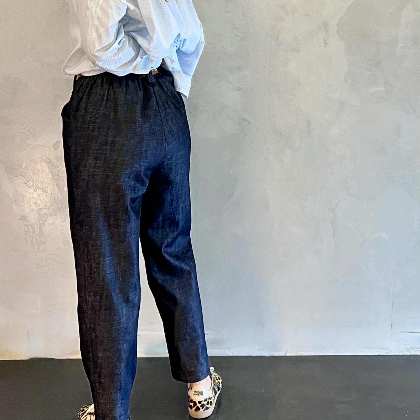 Le pantalon Uppsala est le basique chic et moderne qui manquait à votre dressing cousu main. Avec sa coupe 7/8ème fuselée, ses doubles passants élégants et ses poches fantaisie, il allie confort et style pour toutes les occasions.