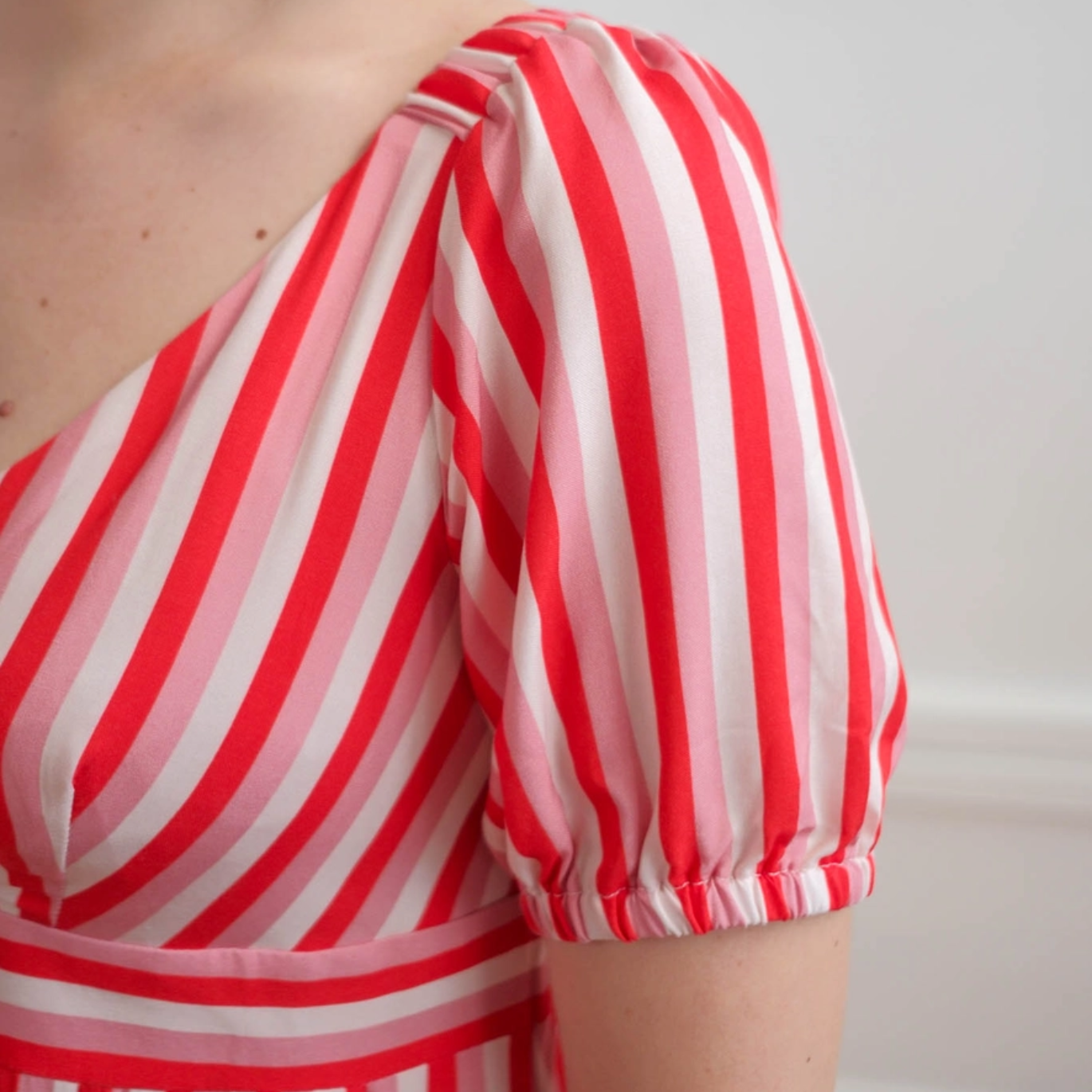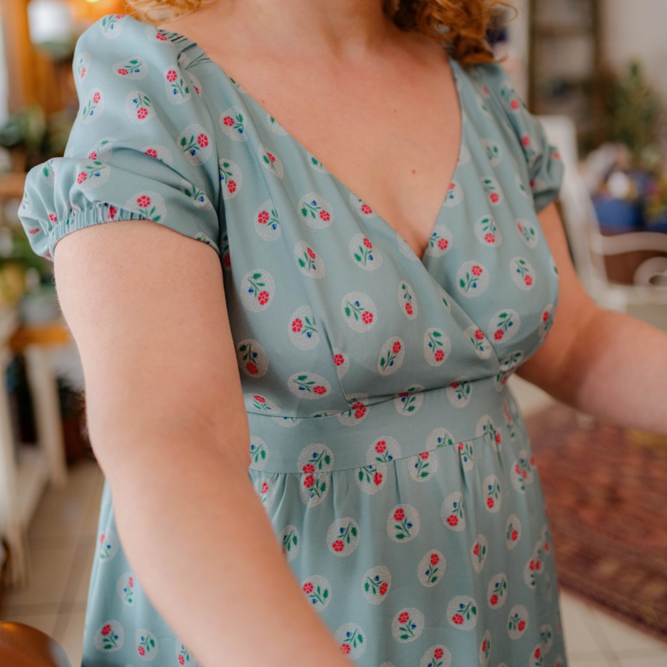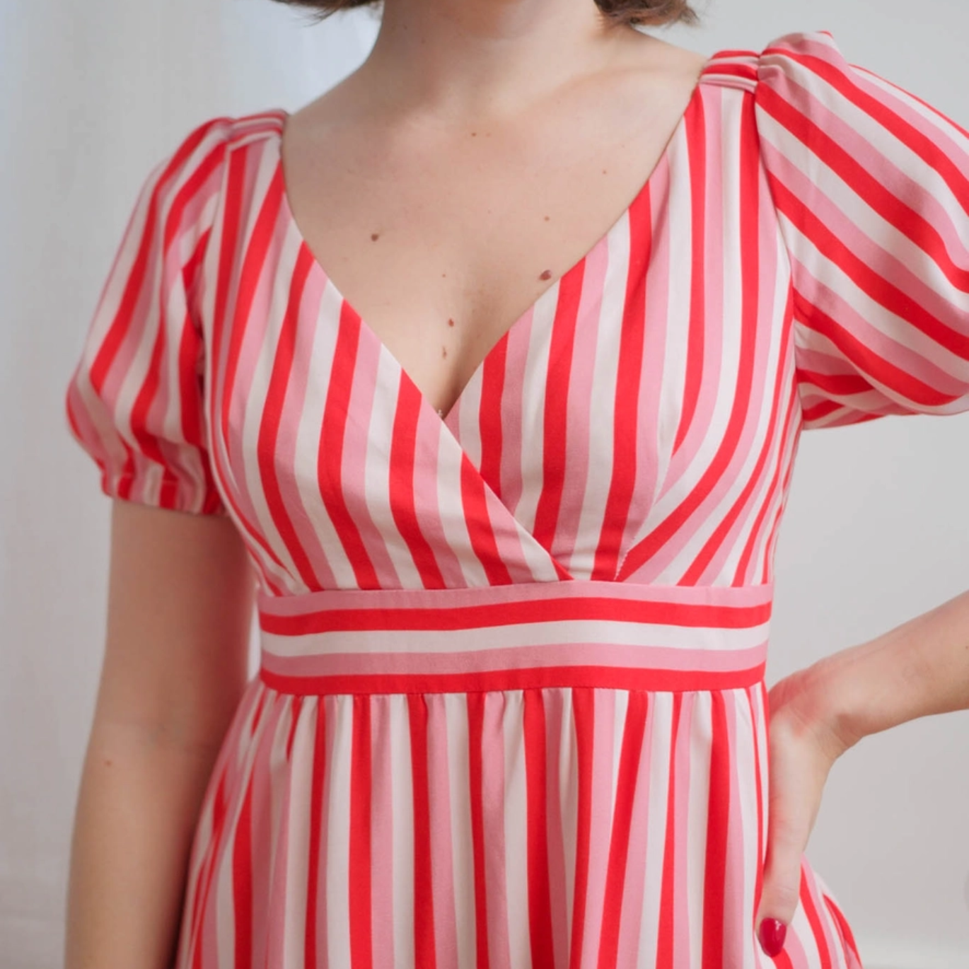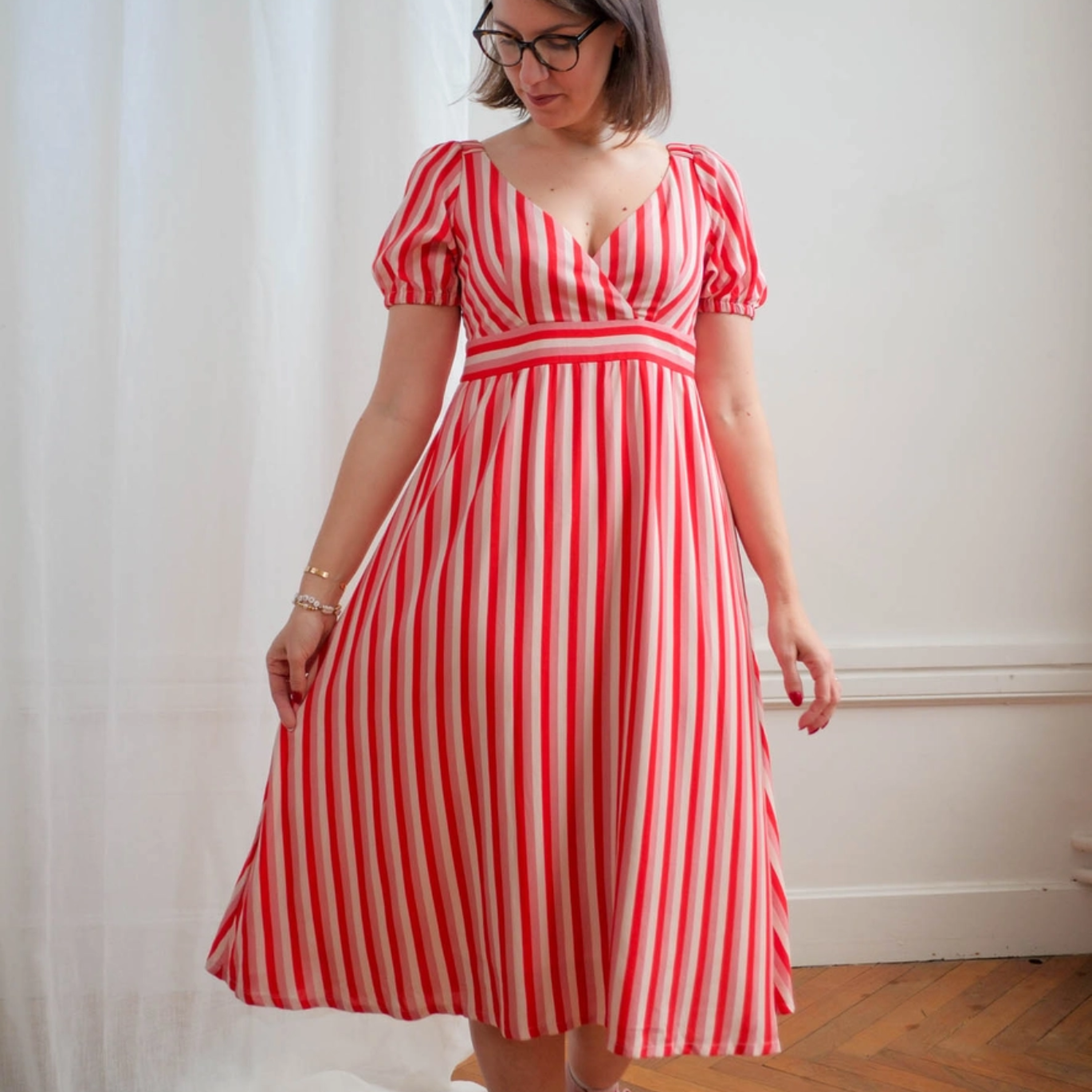 Laissez-vous charmer par notre robe de printemps : un buste cache-cœur ajusté, une taille empire, une jupe évasée et des manches bouffantes pour une allure romantique et élégante. Le buste doublé et la fermeture invisible garantissent une finition soignée. Un projet couture parfait pour celles qui aiment soigner les détails et créer une pièce unique