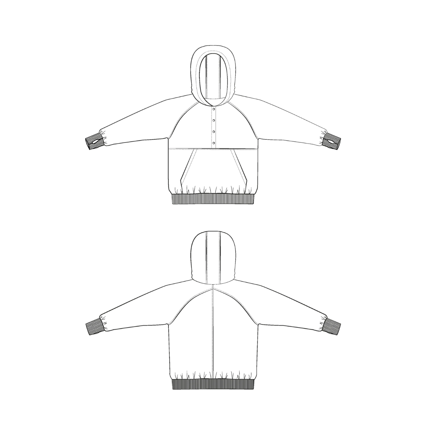 Issu de la capsule Nomade 2025, Adèle reprend les codes du sportswear avec cette touche singulière qui fait toute la différence : une grande capuche confortable et parfaitement finie, une poche kangourou généreuse, une découpe graphique dans le dos – signature de la saison chez Maison Fauve – et de longs poignets avec ouverture pour le pouce, pensés pour réchauffer les mains avec style.