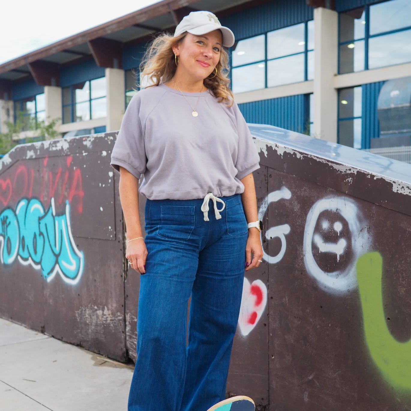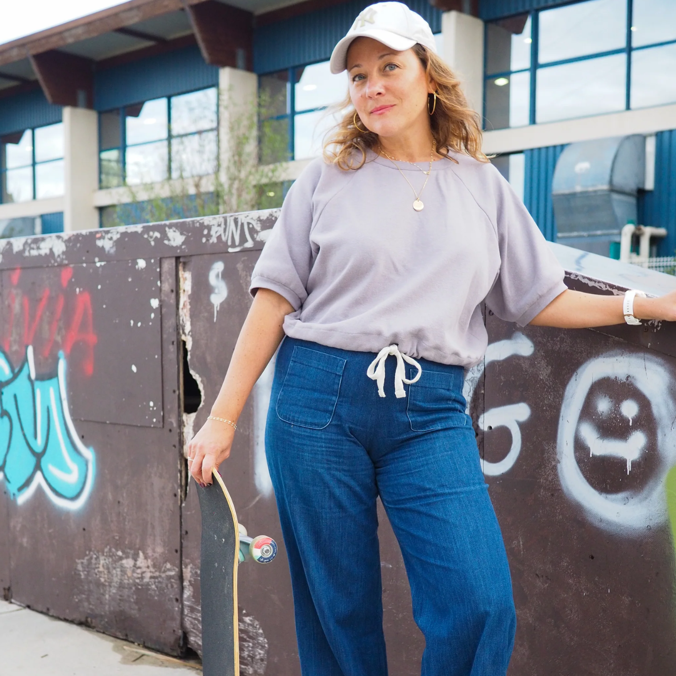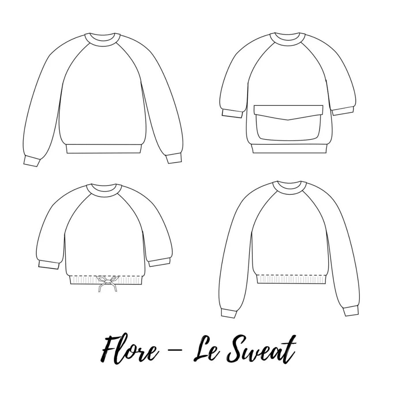 Qui n’a pas eu envie d’un petit haut confort et chaud offrant un maximum de style ??? Ma Petite Fabrique vous propose de coudre le sweat Flore, un sweat à manches raglans déclinable en deux longueurs (longueur normale et crop top) et doté de deux longueurs de manches (longue et niveau coude). Pour la version crop top, vous pourrez faire la finition du bas du sweat avec un élastique ou avec un cordon. Vous pourrez également agrémenter le devant du sweat d’une grande poche.