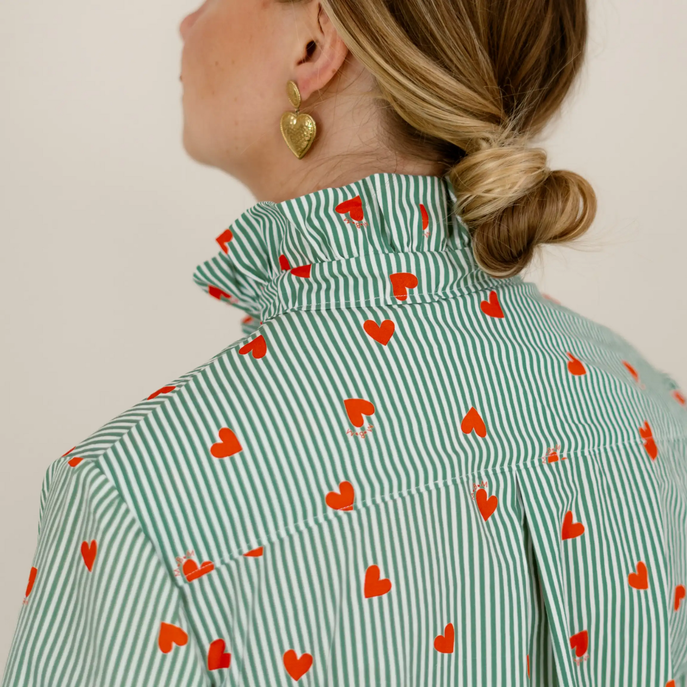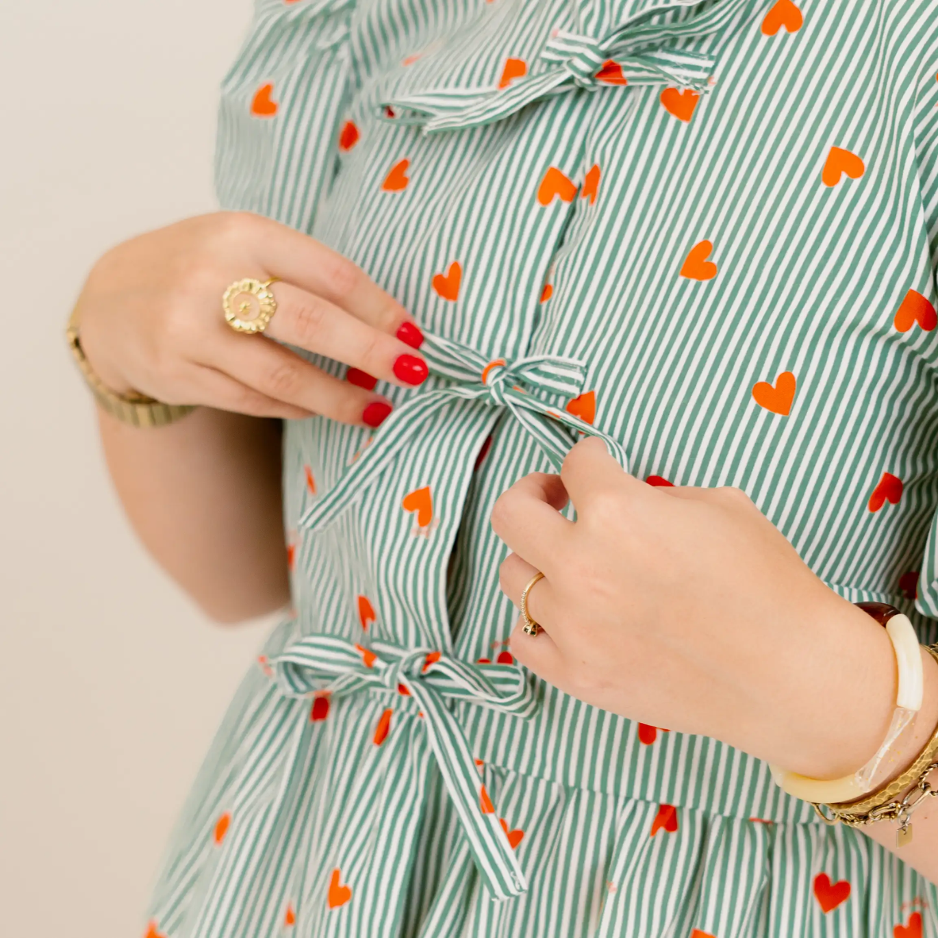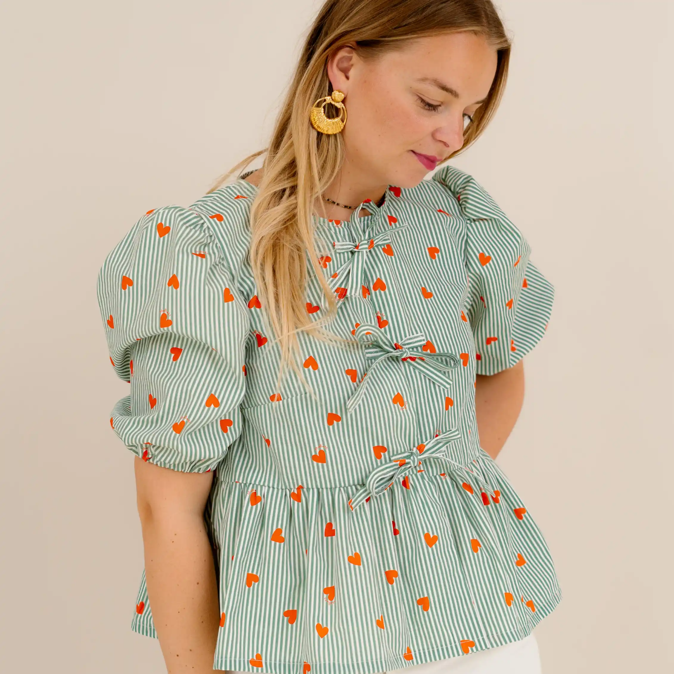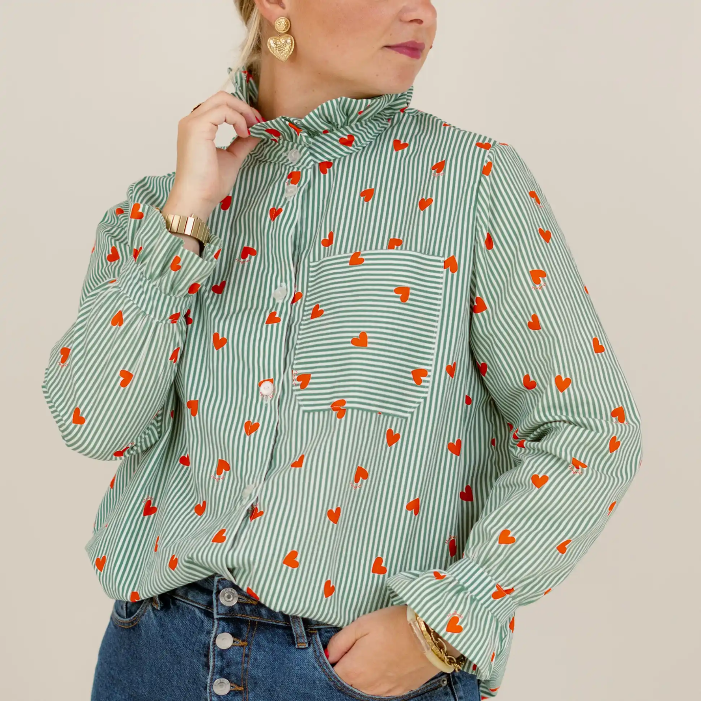 Roméo est un motif audacieux et inspirant. En réinterprétant le motif classique des rayures d’une chemise avec un coloris vert pétillant et de petits cœurs coquelicots, Roméo invite à l’amour et à créer des hauts que vous ne quitterez plus