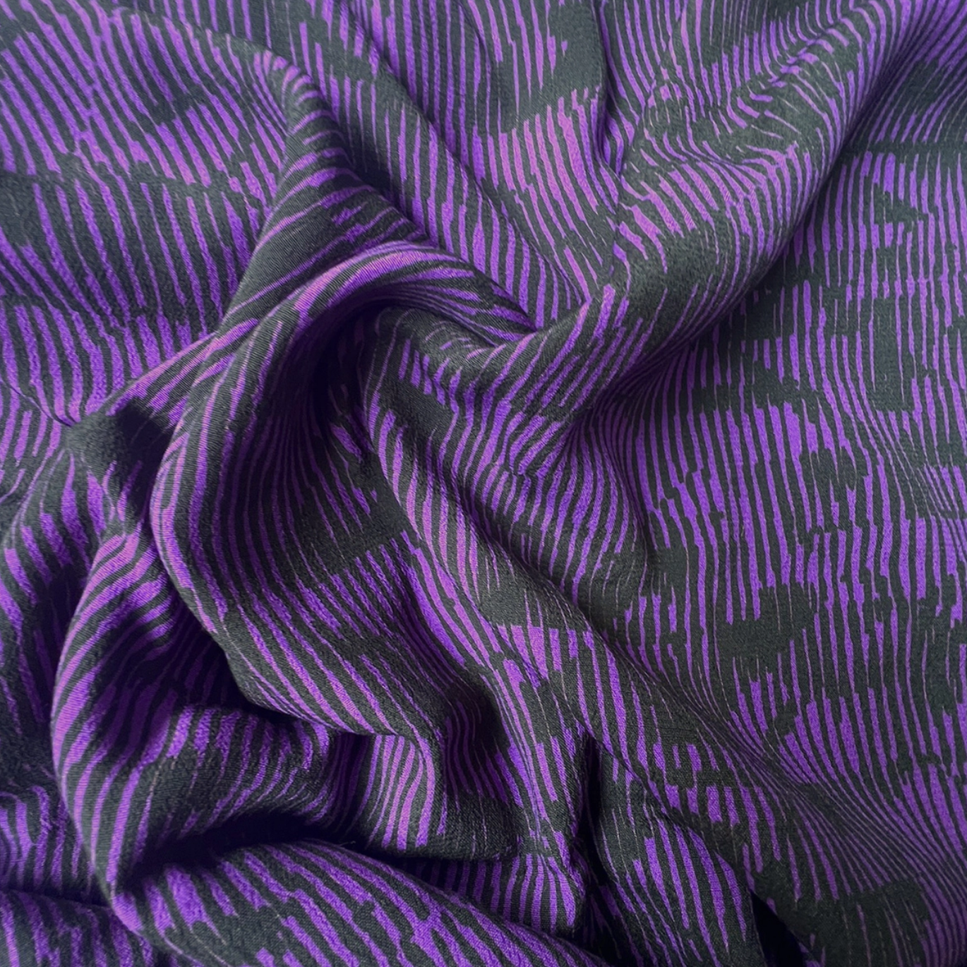 Sortilège violet évoque les élixirs oubliés, les rituels anciens et la puissance des nuits profondes. Son crêpe léger et texturé lui confère un tombé parfait pour des robes , des blouses ou des jupes.