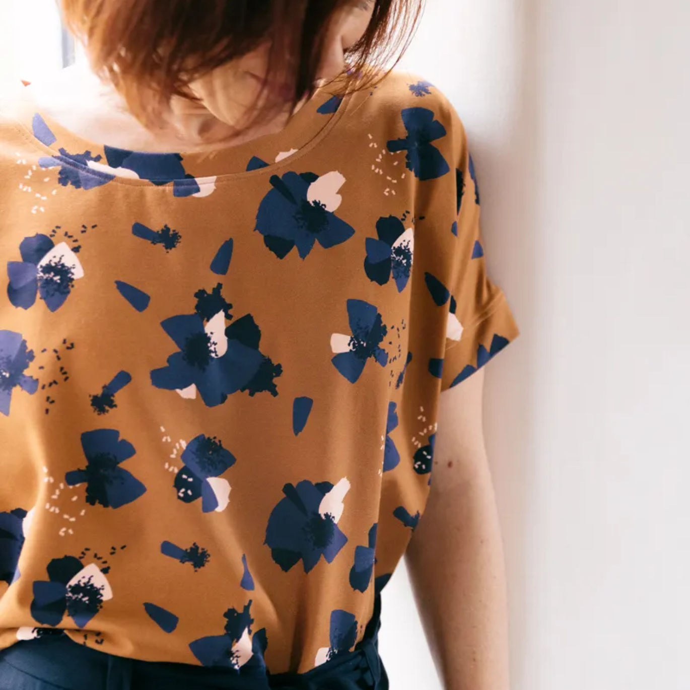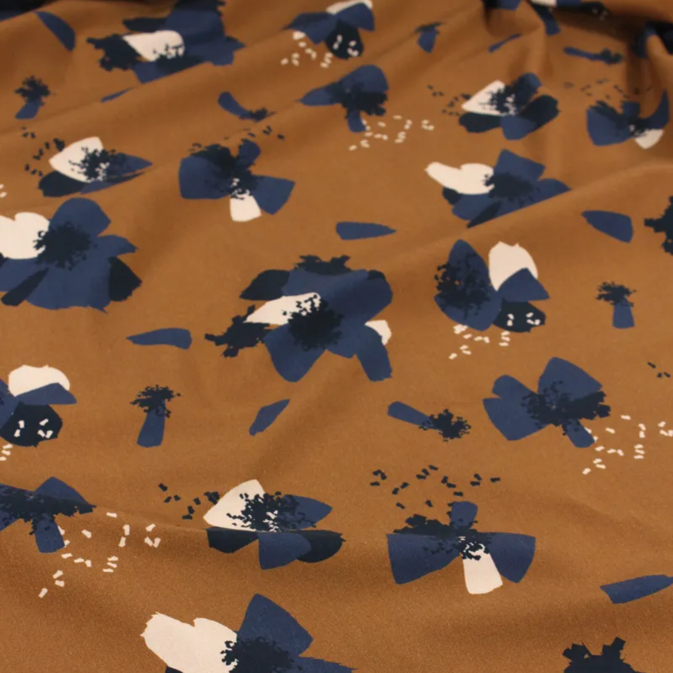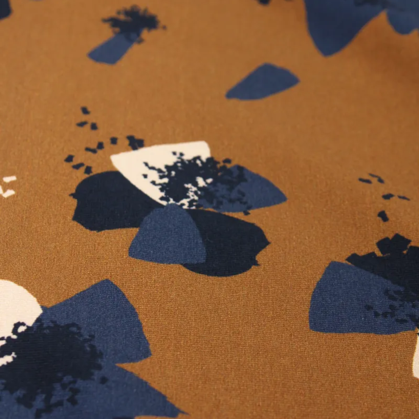Notre jersey de coton Anémona est de retour et il se pare d’une belle robe Camel. Doux, extensible et tellement moderne avec ces fleurs imparfaites, il est parfait pour coudre des vêtements à toute la famille.  Tee shirts, robes, leggings, boxers, culottes, bodys… à vous les nombreux projets cousus rapidement !