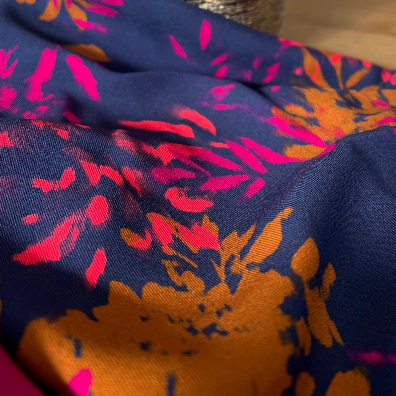 Son motif floral intense et profond, aux nuances vibrantes, apporte du caractère tout en restant facile à porter. C’est un tissu qui sublime les coupes simples comme les silhouettes plus travaillées, et qui traverse toutes les saisons